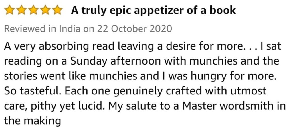 The book has been received very well by the readers as can be seen by the amazing reviews it has received. I hope you like the stories as well. There is something for everyone in the collection.